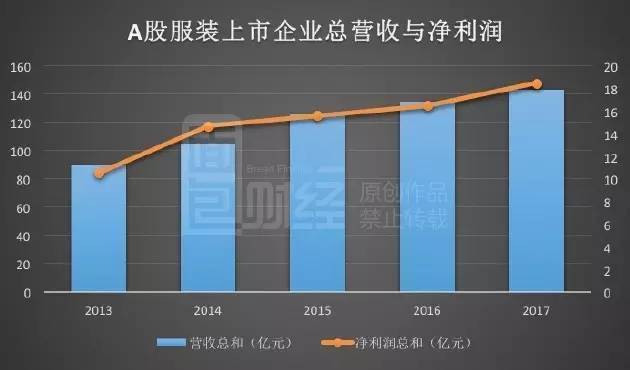 在经历了连续三年的下跌之后,2017财年,波司登营收恢复增长,利润上涨四成,在港上市的中国利郎业绩也明显好转。今年一季度,A股上市的服装企业总利润上涨高达15%,远超上年同期。